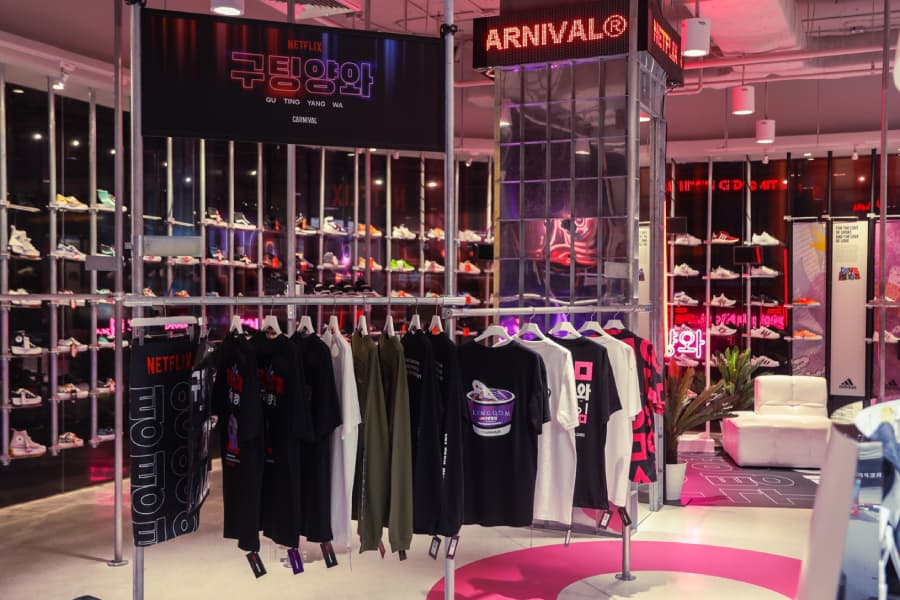 แฟนๆ ซีรีส์สายสตรีทต่างพากันให้กระแสตอบรับอย่างล้นหลามสำหรับคอลเลกชันสุดเอ็กซ์คลูซีฟ ‘GU TING YANG WA’ ซึ่งเป็นความร่วมมือระหว่าง Netflix และแบรนด์สตรีทแฟชันชั้นนำของไทยอย่าง Carnival กับคอลเลกชันสตรีทแวร์ที่ได้รับแรงบันดาลใจจากซีรีส์มาแรงระดับโลกโดย Netflix อย่าง ผีดิบคลั่ง บัลลังก์เดือด (Kingdom), D.P. หน่วยล่าทหารหนีทัพ (D.P.) และ สควิดเกม เล่นลุ้นตาย (Squid Game) โดยตั้งแต่เวลาเช้ามืดของวันที่คอลเลกชันวางจำหน่าย มีแฟนๆ กว่า 300-400 คน มาเข้าแถวอย่างเป็นระเบียบหน้าห้างสรรพสินค้าเซ็นทรัลเวิลด์ภายใต้มาตรการควบคุมการแพร่ระบาดของโควิด-19 เพื่อให้ไม่พลาดการเป็นส่วนหนึ่งของแคมเปญฮิตครั้งนี้