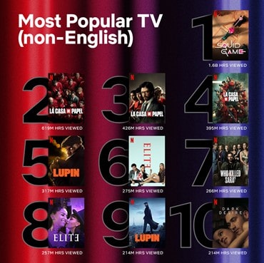 La Casa de Papel (Money Heist) เป็นหนึ่งในซีรีส์ทางโทรทัศน์ที่ไม่ใช่ซีรีส์ภาษาอังกฤษ ที่ได้รับความนิยมสูงสุดทาง Netflex จากข้อมูที่เผยแพร่เมื่อเร็ว ๆ นี้ทาง Top10.Netflix.com โดยทั้งภาค 3, 4 และ 5 ติดอันดับสูงใน 10 อันดับแรก