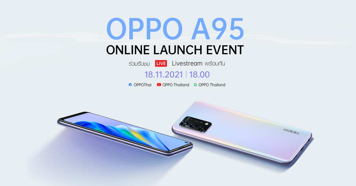 OPPO A95 เตรียมเปิดตัวในประเทศไทยอย่างเป็นทางการ วันที่ 18 พฤศจิกายน 2564 เวลา 18.00 น. ผ่าน 3 ช่องทางหลัก Facebook OPPOThai, YouTube OPPO Thailand และ Line Official OPPO Thailand มารอลุ้น ราคา และ โปรโมชั่น Pre-Order กัน