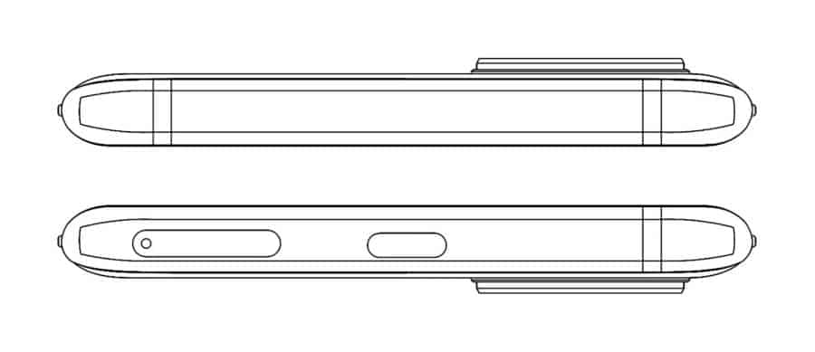 ภาพในสิทธิบัตรเผยให้เห็นว่าขอบด้านซ้อยจะมีปุ่มปรับระดับเสียง และด้านขวามีปุ่มสำหรับเปิดปิด ด้านหลังของอุปกรณ์มีกล้อง 3 ตัว ส่วนขอบด้านล่างมีพอร์ต USB-C และช่องใส่ซิมการ์ด แต่ไม่มีช่องเสียบแจ็ค 3.5 มม.