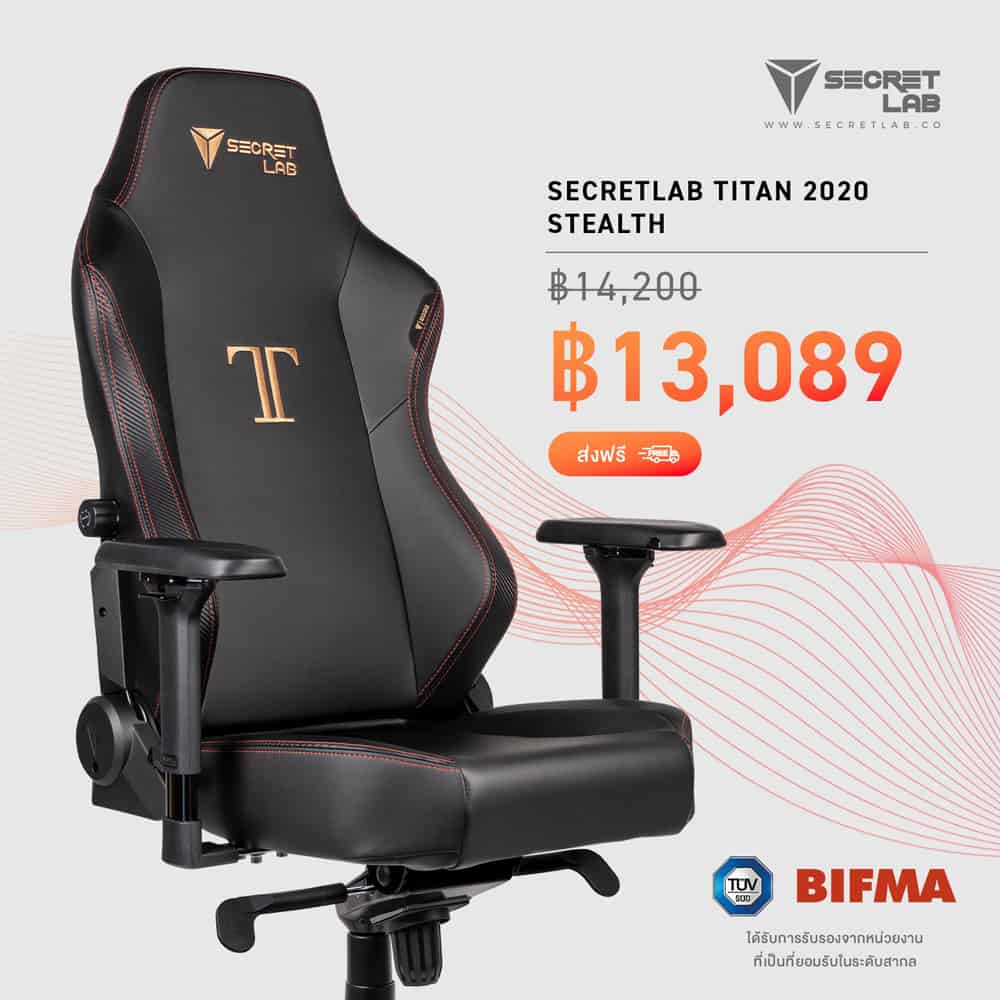 Secretlab TITAN 2020 Stealth ราคา ปกติ 14,200 บาท ลดเหลือ 13,089 บาท พร้อมบริการจัดส่งสินค้าฟรี