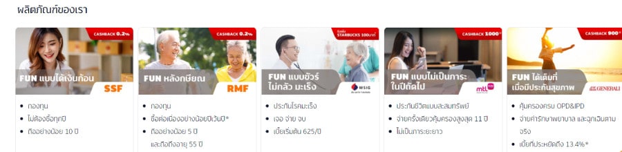 - FUN แบบไม่เป็นภาระในปีถัดไป : ประกันสะสมทรัพย์จากเมืองไทยประกันภัย จ่ายครั้งเดียวในปีแรก คุ้มครองนาน 11 ปี ลดหย่อนภาษีสูงสุด 100,000 บาท สำหรับใครที่ไม่ต้องการความยุ่งยากและไม่ต้องการเพิ่มภาระค่าใช้จ่ายรายปี ในปีถัด ๆ ไปจะได้จัดสรรเงินไปใช้ชีวิตสุด FUN ได้ พิเศษ! ชำระเพื่อซื้อแผนประกันสะสมทรัพย์จากเมืองไทยประกันภัยผ่าน TrueMoney Wallet วันนี้ รับเงินคืนสูงสุดถึง 1,000 บาท*