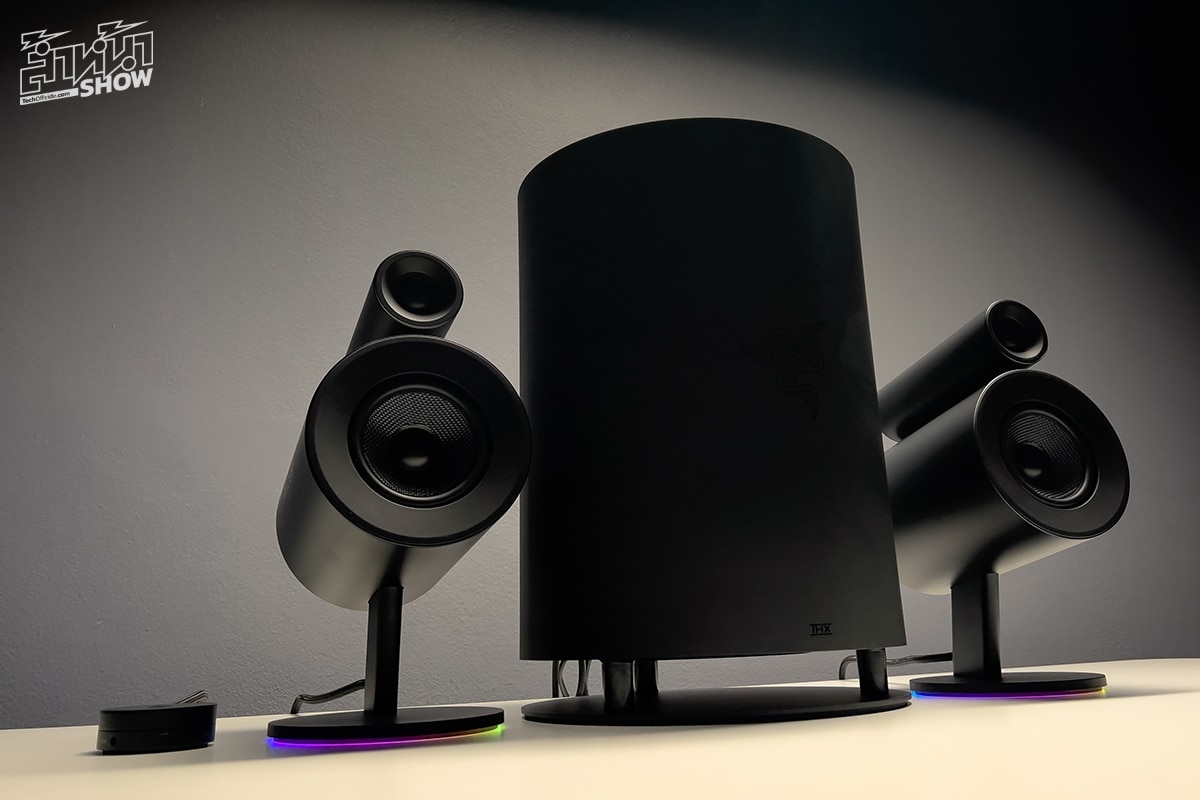 นี่คือลำโพงตัวท็อปสุดของทางแบรนด์ RAZER เพื่อนรักนักเล่นเกม ที่บอกเลยว่าไม่ธรรมดา ด้วยทรงของลำโพงที่แยกซ้ายขวา โดยแต่ละด้านจะมีไดร์เวอร์ 2 ตัว แยกตัวย่านเสียงสูง และเสียงทุ้ม รวมเป็น 4 ตัว พร้อมทั้งยังมี Sub woofer ขนาดใหญ่ยักษ์มากๆ อีกตัว ทำให้เสียงที่ได้มีมิติแยกได้คมและชัดเจนมาก