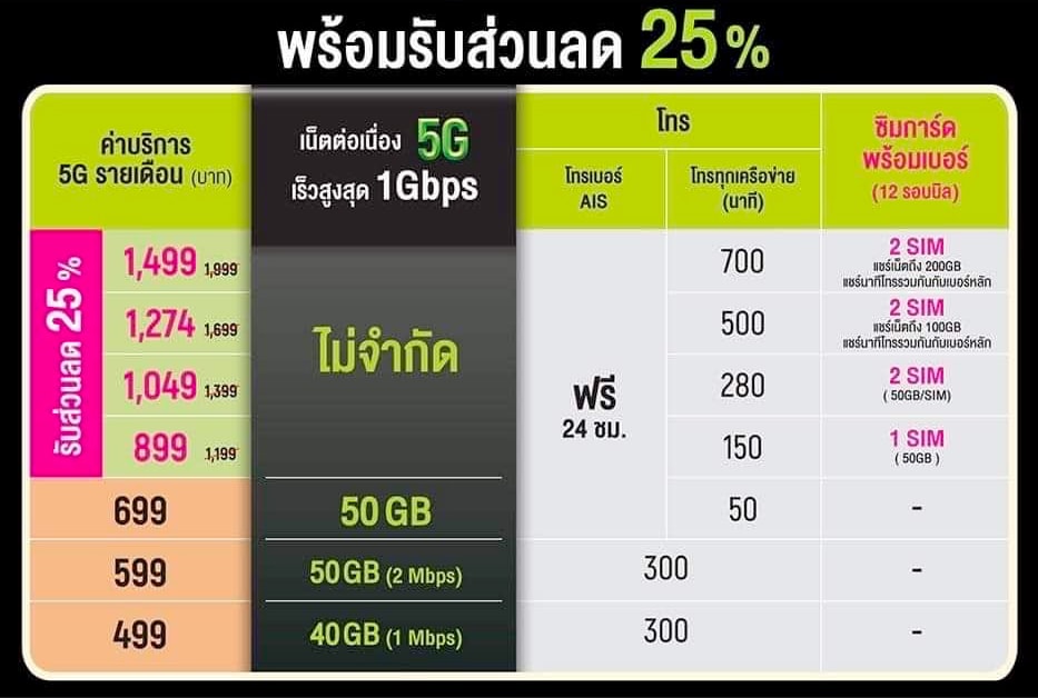 เครือข่ายที่เร็วที่สุด คุณคงอยากจะย้ายมาอยู่กับ AIS แล้วใช่มั้ยล่ะ จะบอกว่าตอนนี้ เอไอเอส มีส่วนลดสูงสุดถึง 25% สำหรับลูกค้าย้ายค่ายเบอร์เดิม ที่สมัครแพ็กเกจ เล่นเน็ต 5G ต่อเนื่องเร็วสูงสุด 1Gbps ไม่จำกัด โดยจะได้ราคาเริ่มต้นเพียงแค่ 899 บาทเท่านั้น