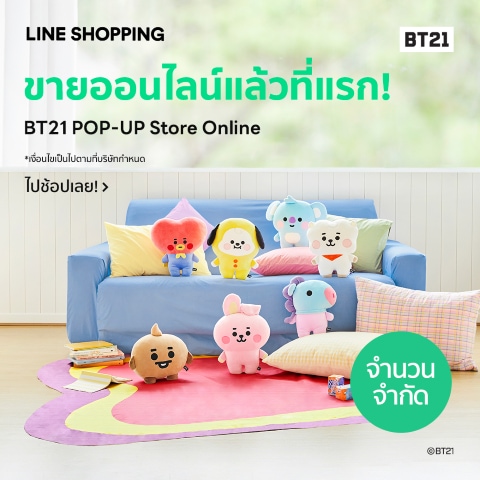 ยกทีมบินมาให้ฟินถึงที่ พร้อมเสิร์ฟความน่ารักส่งตรงจากเกาหลีใต้ กับ BT21 คาแรคเตอร์ชื่อดังระดับโลก ที่มีวางจำหน่ายผ่านช่องทางออนไลน์อย่างเป็นทางการแล้วในประเทศไทยที่LINE SHOPPINGที่แรก และที่เดียวให้แฟนคลับได้เลือกชอปสินค้า Official ของแท้ ถูกลิขสิทธิ์ 100% จัดเต็มกว่า 100 รายการ ทั้ง เครื่องเขียน เสื้อผ้าแฟชั่น กระเป๋า ตุ๊กตา หมอนนุ่มนิ่ม ผ้าห่ม และอื่นๆ ที่จะตามมาให้เลือกหยิบใส่ตะกร้าอีกมากมาย