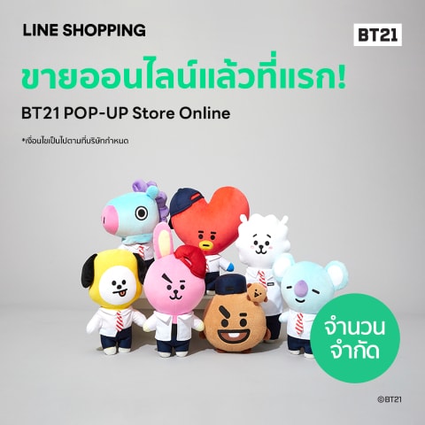 งานนี้ LINE SHOPPING เปิดโอกาสให้แฟนคลับได้เต็มอิ่มกับความคิ้วท์ของเหล่า BT21 พร้อมรับความคุ้มค่าไปอีกขั้น เมื่อชอปผ่าน LINE SHOPPING และชำระเงินผ่าน Rabbit LINE Pay รับทันที LINE POINTS สุดคุ้มให้ได้ไป เบิร์นต่อได้อีกด้วย งานนี้สนใจสินค้าชิ้นไหนรีบมาสอยให้ไว เพราะเหล่าน้องๆ BT21 มีให้เลือกชอปสินค้าโดนใจ ได้ตั้งแต่วันนี้ – 31 มกราคม 2565 เท่านั้น จะซื้อให้ตัวเองหรือให้คนที่รักก็เข้าไปเลือกซื้อสินค้า BT21 ผ่าน LINE SHOPPING ได้เลยเพียง เปิด LINE ไปที่หน้า Wallet กด LINE SHOPPING หรือคลิก https://shop.line.me/@bt21thailandpopup หรือที่ BT21 Pop-up Store ที่สยามเซ็นเตอร์ ชั้น 1