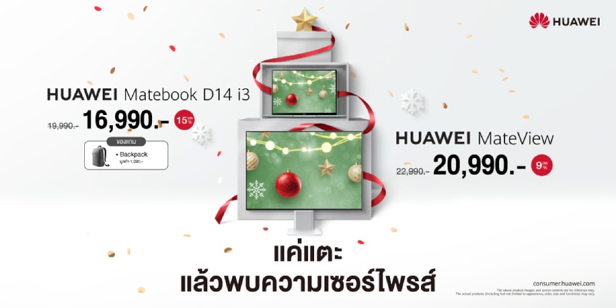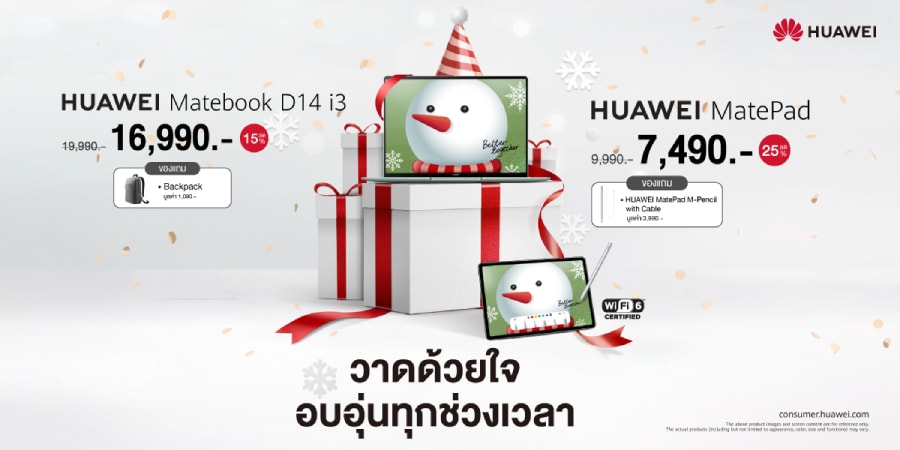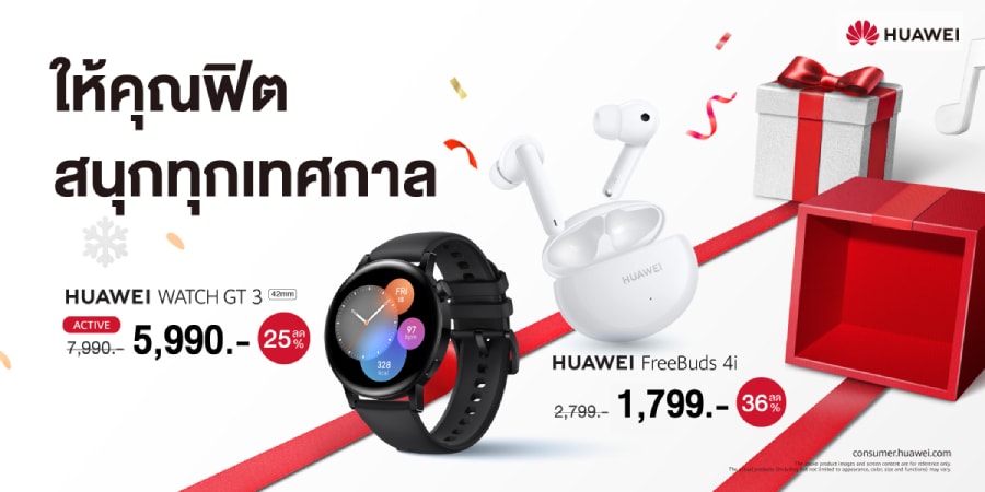 หัวเว่ย หนักฉลองปีใหม่ ส่งแคมเปญ ALL THE JOY YOU CAN HAVE มอบส่วนลดราคาสินค้าไอที ลด 50% พร้อมคูปองส่วนลดมูลค่าสูงสุด 400 บาท ผ่านทางออนไลน์เท่านั้น 17 ธันวาคม 2564 – 3 มกราคม 2565