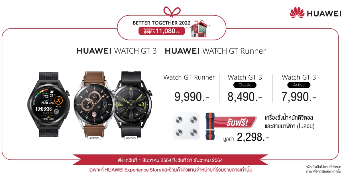 หนุ่มๆ หรือเพื่อนสาวๆ คนไหนกำลังเล็งสินค้าช่วง คริสต์มาส นี้ HUAWEI WATCH GT 3 ขนาด 42 มม. แก็ตเจ็ต ดีๆ ที่สาวๆ ควรมี ราคาเริ่มต้น 7,990 บาท ก็เป็นตัวเลือกที่ทั้งสวยและใส่ใจสุขภาพที่ไม่ควรพลาดสามารถไปสัมผัสความสวยเก๋ และซื้อเป็นของขวัญสิ้นปีได้ที่หน้าร้าน HUAWEI Experience Store และร้านค้าตัวแทนจำหน่ายที่ร่วมรายการ รวมถึงช่องทางออนไลน์ทั้งเว็บไซต์ HUAWEI Store และร้านค้าออนไลน์อย่างเป็นทางการของหัวเว่ยใน Shopee, Lazada และ JD Central โดยสามารถศึกษาข้อมูลเพิ่มเติมเกี่ยวกับผลิตภัณฑ์ที่นี่ และ โปรโมชั่นได้ที่นี่