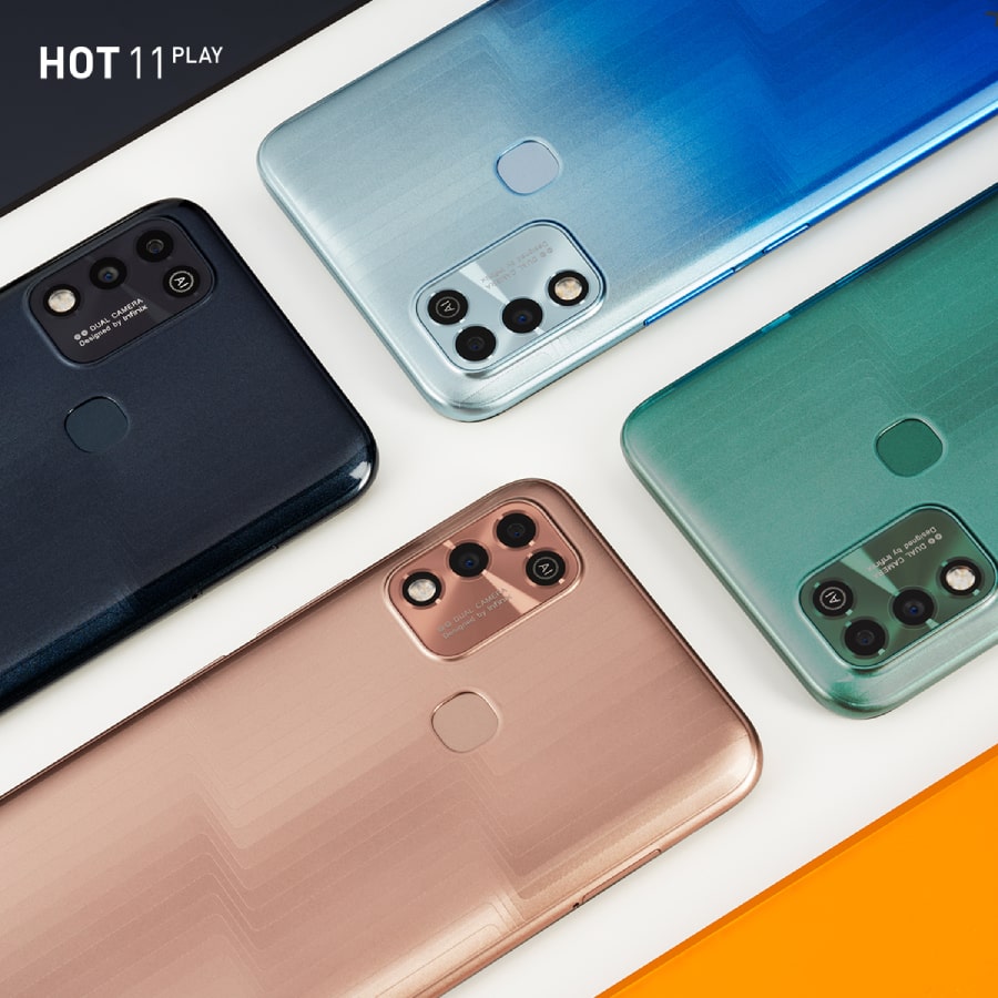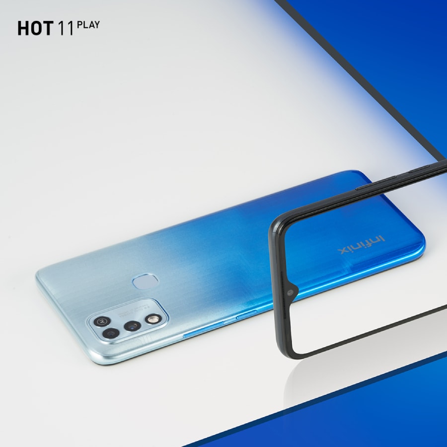 Infinix HOT 11 PLAY มาพร้อมกับ RamRom 4+64 โดดเด่นด้วยดีไซน์ฝาหลังที่เป็นเส้นสะท้อนแสงที่สวยงามและการออกแบบที่สมมาตร ขับเคลื่อนทุกความสนุกด้วยระบบปฏิบัติการ Android™ 11 พร้อม XOS Version 7.6 ที่มาพร้อมฟังก์ชันการปลดล็อคตัวเครื่องด้วยใบหน้าและลายนิ้วมือ เพื่อช่วยรักษาความปลอดภัยให้กับผู้ใช้งานอีกด้วย ในส่วนของกล้องรุ่นนี้มาพร้อมกล้องหน้าความละเอียด 8 ล้านพิกเซล ส่วนกล้องหลังความละเอียด 13 ล้านพิกเซล F 1.8 ผสานกับ AI LENS ที่ช่วยในการเบลอภาพและตัดขอบให้ภาพสวยงามมากยิ่งขึ้น