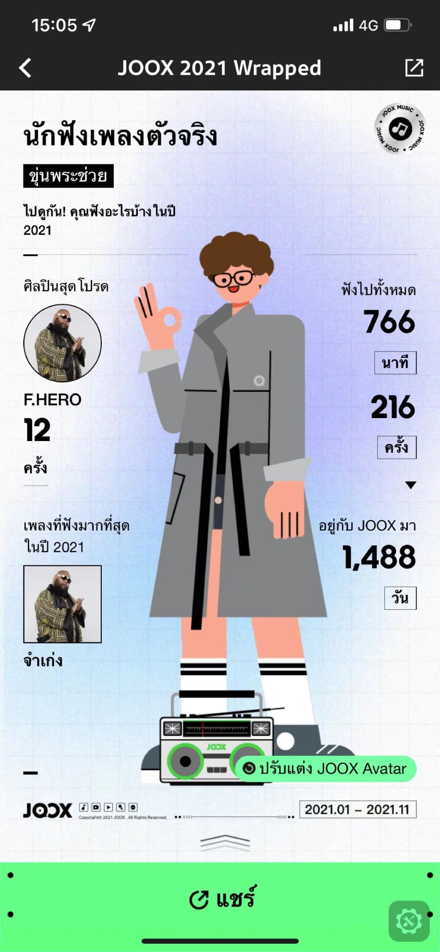 ล่าสุด JOOX ยังปล่อย JOOX Wrapped 2021 โดยรวบรวมสถิติการฟังเพลง เพลย์ลิสต์ และศิลปิน ที่คุณฟังบ่อยที่สุดประจำปีมาให้ทุกคนได้เล่น และแชร์บนโซเชียล โดยมีกิมมิกสุดปั๊วให้ผู้ใช้สร้างร่างอวตาร์ในสไตล์ของตัวเอง แล้วมาสนุก และแชร์ JOOX Wrapped 2021 ประจำตัวกันเลย ที่ JOOX คลิกเลยที่นี่