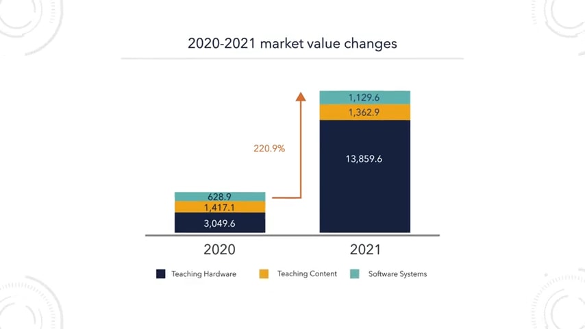 จากรายงานผลการสำรวจอุตสาหกรรมเอ็ดดูเทค (EdTech) ของไต้หวันในปี 2564 มีมูลค่าการส่งออกรวมประมาณ 16.4 พันล้านดอลลาร์สหรัฐฯ เมื่อเทียบกับปี 2563 ที่มีมูลค่าการส่งออกคิดเป็นเติบโตถึง 220.9% ต่อปี โดยเฉพาะอย่างยิ่งในช่วงที่มีการแพร่การระบาดโควิด-19 ซึ่งเป็นปัจจัยกระตุ้นให้เทคโนฯ ด้านการเรียนการสอนมีความต้องการเพิ่มขึ้น มีสัดส่วนมากกว่า 80% ของมูลค่าการส่งออกทั้งหมดทั้งด้าน ซอฟต์แวร์การสอน ผลิตภัณฑ์การสื่อสาร วิดีโอบนคลาวด์ และแพลตฟอร์มการเรียนรู้ รวมทั้งอุปกรณ์ช่วยสอน รวมถึงข้อกำหนดในการปรับใช้อื่น ๆ จากการเติบโตอย่างมากชี้ให้เห็นถึงการเติบโตของอุตสาหกรรมเอ็ดดูเทค (EdTech) ที่ได้รับปัจจัยมาจากวิกฤตโควิด