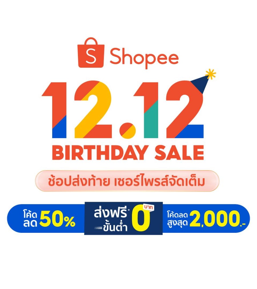 จัดหนักจัดเต็มกับดีลเด็ดส่งท้ายปีที่ใส่ไม่ยั้งให้กับลูกค้า ทั้งส่วนลดสูงสุดถึง 70% แถมให้เพิ่มไม่มีกั๊กด้วยโค้ดส่วนลดสูงสุด 1,000 บาท พร้อมหลากกิจกรรมที่มีแต่ให้กับให้แบบสุดๆ ในมหกรรม Shopee 12.12 Birthday Sale ตั้งแต่วันนี้ จนถึงวันที่ 12 ธันวาคมนี้