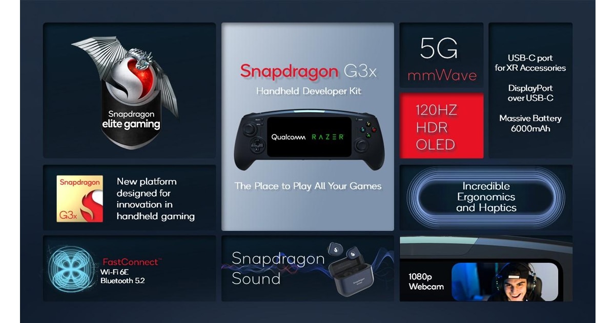 Qualcomm ประกาศเปิดตัว Snapdragon G3x Gen 1 ชิปเซ็ตตัวแรกสำหรับเครื่องเกมแบบพกพา ที่มอบประสิทธิภาพสุดล้ำหน้าในการรันเกม Android ทั้งหมด สามารถเล่นคอนเทนต์ต่างๆ ได้จากไลบรารี่เกมบนคลาวด์ สตรีมเกมจากเครื่องคอนโซลหลักหรือ PC และเพลินไปกับความบันเทิงจากแอป Android ที่ชื่นชอบได้ โดยตัว Developer Kit ได้ทาง Razer มาร่วมพัฒนาให้