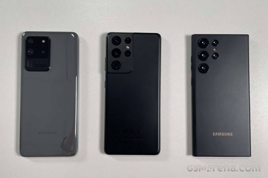 และนี่คือภาพการเทียบความแตกต่างของขนาดระหว่าง S20 Ultra, S21 Ultra และ S22 Ultra ให้เห็นกันแบบชัด ๆ