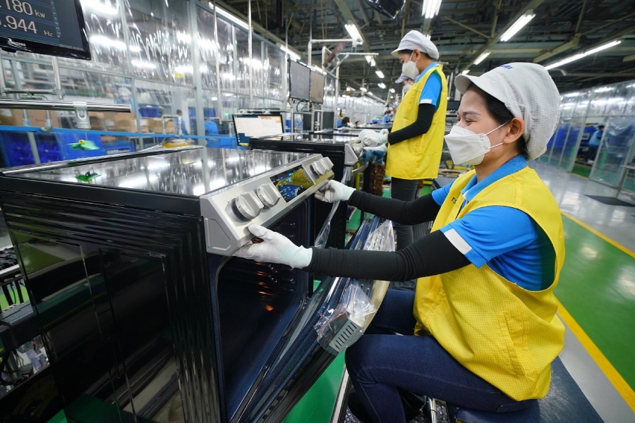 ไทยซัมซุงเริ่มต้นดูแลสิ่งแวดล้อมตั้งแต่กระบวนการผลิต โดยการลดปริมาณขยะพิษและการใช้ทรัพยากรธรรมชาติของประเทศไทยอย่างเป็นระบบ เช่น โรงงานผลิตเตาอบของไทยซัมซุงเปลี่ยนวิธีการเคลือบผิวเครื่องใช้ไฟฟ้าจากการใช้สารเคมีประเภทกรดปริมาณมากในการเคลือบผิวด้านในของเตาอบ มาเป็นการใช้วิธี Low Temperature Coating ทำให้ไม่จำเป็นต้องใช้สารเคมีในกระบวนการนี้เลย (Zero Chemical Waste) อีกทั้งเปลี่ยนการใช้ทรัพยากรน้ำในการทดสอบการรั่วไหลของผลิตภัณฑ์ มาเป็นใช้ความดันลมแทน ทำให้ลดการสร้างปริมาณน้ำเสียลง