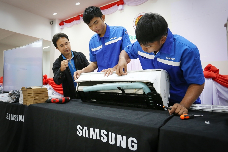 ความใส่ใจคนในสังคมไทยยังรวมไปถึงแรงงานฝีมือที่ทำงานใกล้ชิดกับซัมซุงในอุตสาหกรรมเครื่องปรับอากาศ อย่าง ช่างเครื่องปรับอากาศอีกด้วย โดยซัมซุงได้พัฒนาโครงการ AC Installer Community ร่วมกับกรมพัฒนาฝีมือแรงงาน กระทรวงแรงงาน จัดทำคอร์สฝึกอบรมพัฒนาฝีมือแรงงานช่างเครื่องปรับอากาศ เพื่อพัฒนาศักยภาพและความสามารถ พร้อมยกระดับทักษะให้มีคุณภาพตามมาตรฐานสากล ตลอดจนส่งเสริมให้ช่างมีใบรับรองตามกฎหมาย เพื่อเพิ่มทรัพยากรบุคคลให้ตลาดที่กำลังขาดแคลนแรงงานที่มีความสามารถและทักษะในการปฏิบัติการ