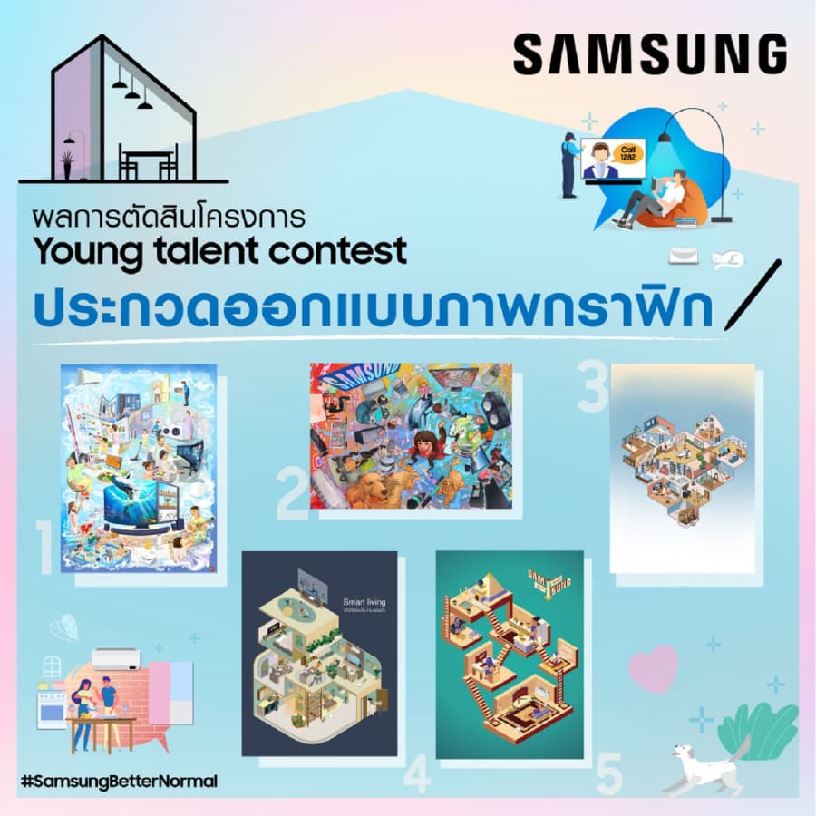 Samsung ประกาศผล 5 เยาวชนผู้ชนะโครงการ Young Talent Contest พร้อมโชว์ผลงานการออกแบบภาพ ภายใต้หัวข้อ “SAMSUNG BETTER NORMAL” เปิดพื้นที่ให้คนรุ่นใหม่ร่วมปล่อยพลังความคิดสร้างสรรค์