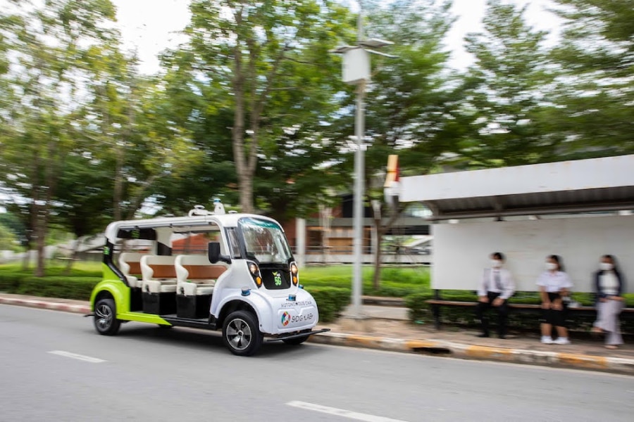 หลังจากที่ AIS และ มหาวิทยาลัยธรรมศาสตร์ ได้เปิดตัวศูนย์ปฏิบัติการความยั่งยืนแห่งแรกในเอเชีย “SDG Lab by Thammasat & AIS” ไปเมื่อช่วงปลายปีที่ผ่านมา ทำให้สถานที่แห่งนี้กลายเป็นพื้นที่ของการนำเทคโนโลยีดิจิทัล 5G มาพัฒนาเพื่อสร้างรากฐานด้านความยั่งยืน ในการยกระดับคุณภาพชีวิตจนสามารถขับเคลื่อนประเทศไปสู่การเป็นสังคมเมืองแบบ Smart City ในที่สุด โดยหนึ่งในความสำเร็จที่เกิดขึ้นคือ การพัฒนาเมืองอย่างยั่งยืน ผ่านระบบการขนส่งต้นแบบอัจฉริยะด้วย รถ EV “รถไฟฟ้าไร้คนขับ” ที่ใช้พลังงานไฟฟ้า 100% ในการขับเคลื่อนบนโครงข่ายอัจฉริยะ AIS 5G พร้อมให้บริการทดลองรับ-ส่ง ภายในพื้นที่มหาวิทยาลัยธรรมศาสตร์ ให้นักศึกษา-บุคลากร สัมผัสประสบการณ์โลกอนาคตได้ก่อนใคร