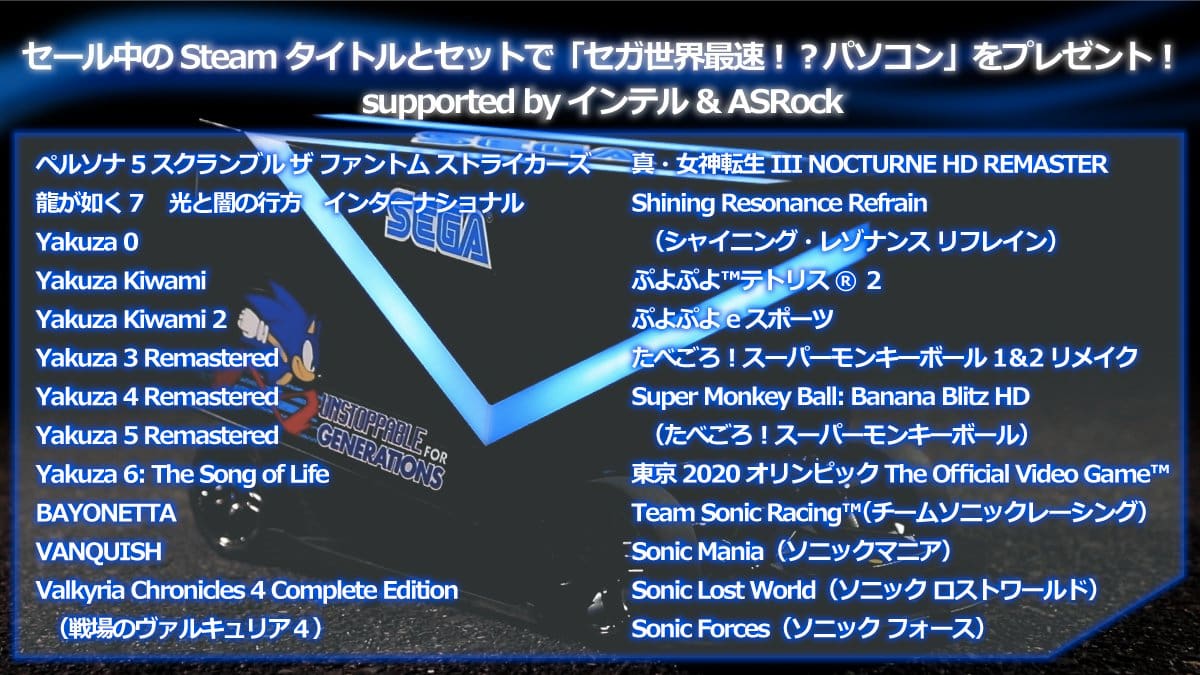 โดยตัวรางวัลยังมีโค้ดเกมของ Sega จำนวน 23 เกมบน Steam ให้อีกด้วย