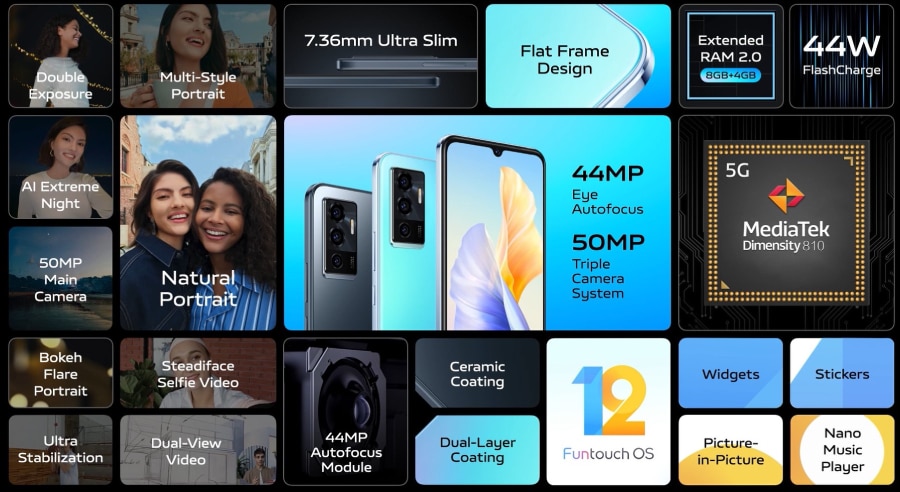 นอกเหนือจากแคมเปญเปิดตัวผลิตภัณฑ์แปลกใหม่ไม่เหมือนใครที่ vivo เลือกมาเป็นกลยุทธ์การสื่อสารทางการตลาดแล้ว ฟีเจอร์ของผลิตภัณฑ์vivo V23e 5Gยังน่าสนใจไม่แพ้กัน โดยvivo V23e 5Gถือเป็นสมาร์ตโฟนตัวล่าสุดของ vivo ในตระกูล V Series ที่โดดเด่นเรื่องเทคโนโลยีด้านการถ่ายภาพเซลฟี ที่มาพร้อมกับกล้องหน้าความชัดถึง 44MP พร้อมฟังก์ชัน Eye Auto Focus, Natural Portrait Selfie และ AI Extreme Night ที่ช่วยให้การถ่ายภาพในที่แสงน้อยดูเป็นธรรมชาติ คมชัด สามารถเก็บสีสันและความสว่างของภาพได้อย่างชัดเจน วางจำหน่ายอย่างเป็นทางการในไทยแล้วที่ ราคา 12,999 บาท