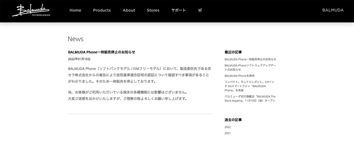 สำนักข่าวรอยเตอร์รายงานว่า Balmuda ตัดสินใจหยุดขายสมาร์ทโฟนรุ่นแรกของตน เกิดจากปัญหาที่ไม่สามารถเปิดเผยได้ แต่มีความเกี่ยวข้องกับการปฏิบัติตามมาตรฐานทางเทคนิคของญี่ปุ่น