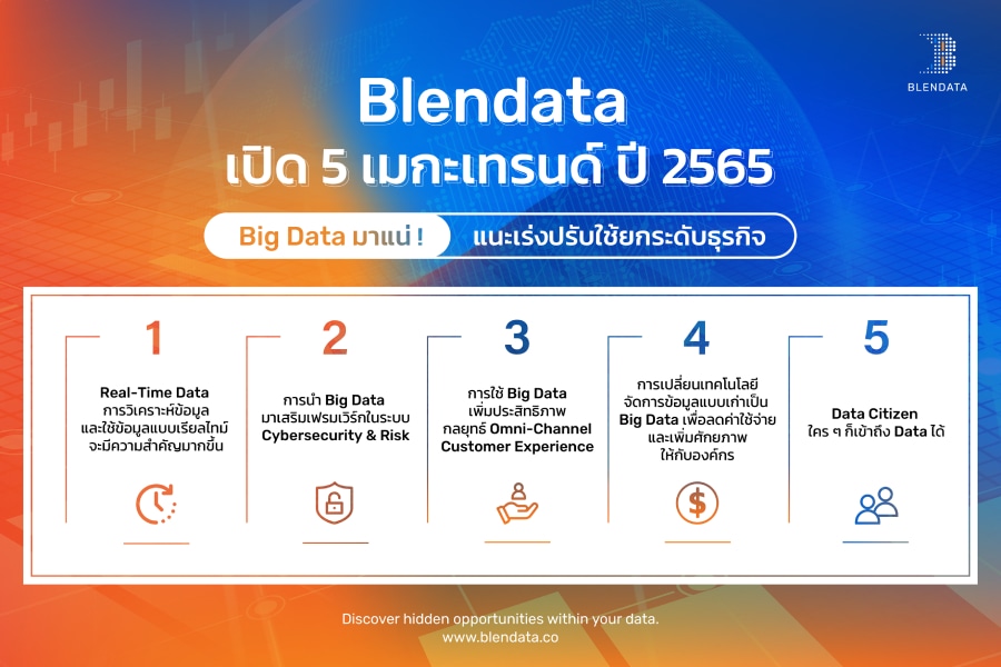 Blendata เปิด 5 เมกะเทรนด์ ปี 2565 Big Data มาแน่ แนะเร่งปรับใช้ยกระดับธุรกิจ นำธุรกิจให้ทรงประสิทธิภาพ พร้อมแข่งขันในยุคดิจิทัล