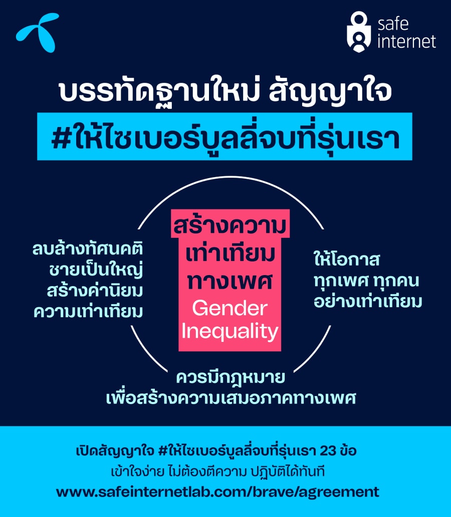ดีแทค เปิดผลศึกษามุมมองคน Gen Z ผ่านบรรทัดฐานใหม่ สัญญาใจ ให้ไซเบอร์บูลลี่จบที่รุ่นเรา พบ 3 ประเด็นหลักคนออนไลน์ยุคใหม่ให้ความสำคัญ “มาตรฐานความงาม ความเท่าเทียมทางเพศ และการคุกคามทางเพศ