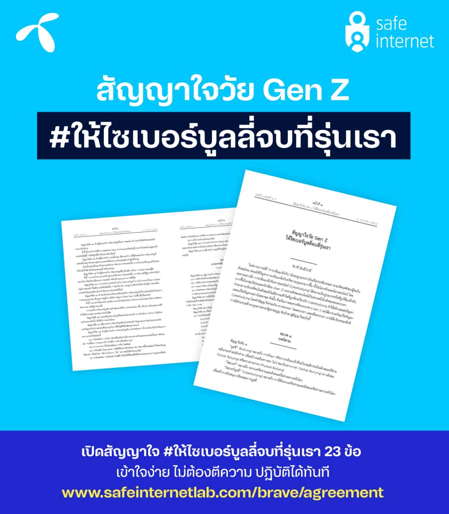 สำหรับผู้ที่สนใจ “ฟัง” เสียงของคนรุ่นใหม่ฉบับเต็ม สามารถอ่านความคิดพวกเขาได้ที่ https://www.safeinternetlab.com/brave/agreement เข้าใจง่าย นำไปปฏิบัติได้ทันที ไม่ต้องตีความ ร่วมส่งเสียงต่อได้ เพื่อสร้างสังคมออนไลน์แบบที่รุ่นเราอยากเห็น