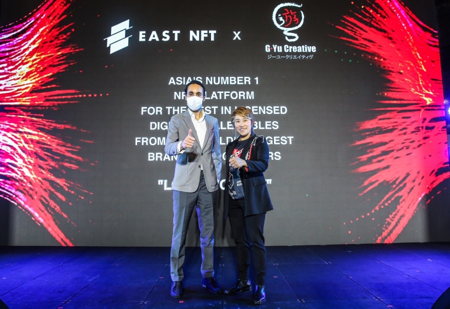 บริษัทจี-ยู ครีเอทีฟ จำกัด ประกาศเปิดตัวผลงานของศิลปินและสินค้าดิจิทัลเพื่อให้ซื้อขายแลกเปลี่ยนได้แล้วทางแพลตฟอร์ม EAST NFT อย่างเป็นทางการในงานใหญ่ที่มีชื่อว่า “JAPAN EXPO THAILAND 2022” ที่จัดขึ้น ณ ศูนย์การค้าเซ็นทรัลเวิลด์