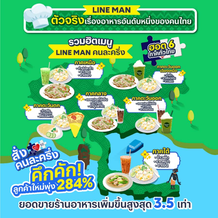LINE MAN แชมป์คนละครึ่งเดลิเวอรี! รวมฮิตท็อป 3 เมนู “คนละครึ่ง” ขายดีจาก 6 ภาค