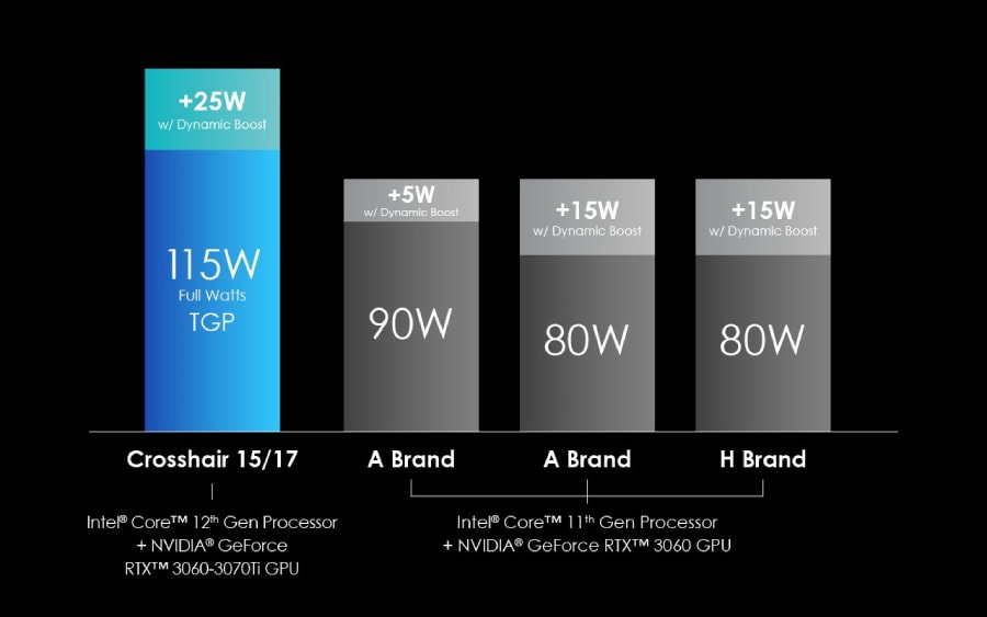MSI Crosshair 15 ถูกออกแบบมาสำหรับผู้ที่ชื่นชอบเกมแนว FPS โดยเฉพาะ ด้วยหน้าจอ QHD 240Hz และกราฟิกการ์ด Nvidia RTX 3070 Ti ที่สามารถทำงานได้สูงสุดถึง 140 วัตต์ ซึ่งมากกว่าโน้ตบุ๊กในรุ่นใกล้เคียงกันถึง 50% และที่สำคัญที่สุด Crosshair 15 รุ่นใหม่นี้ยังเป็นโน้ตบุ๊ก Meta Ready อีกด้วย