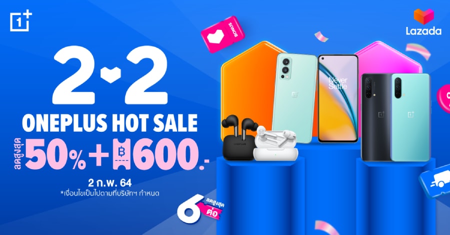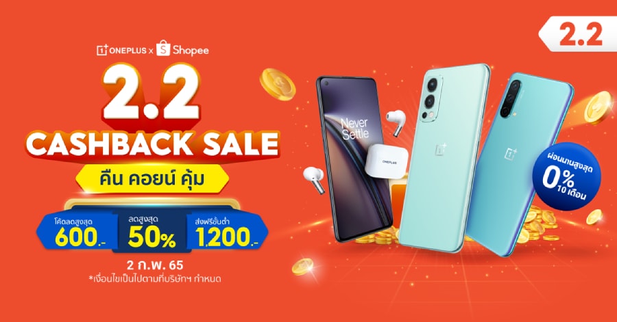 OnePlus 2.2 Cashback Sale มาช้อปกันแบบจัดเต็ม ลดสูงสุด 50% พร้อมโค้ดลดสูงสุด 600.- และของรางวัลอีกมายมายเฉพาะ 2 ก.พ. นี้