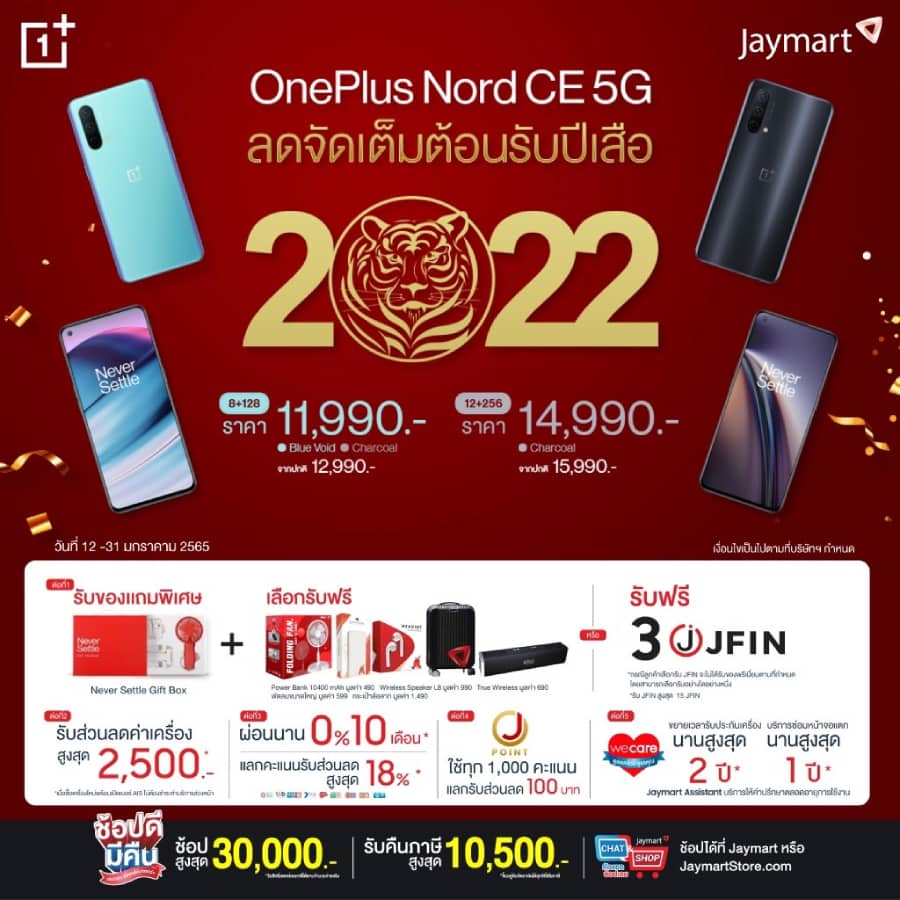 OnePlus Chinese New Year ต้อนรับตรุษจีน ลด 50% พร้อม OnePlus Nord CE 5G ราคาพิเศษ พร้อมคูปองส่วนลดเพิ่มสูงสุดอีก 500 บาท