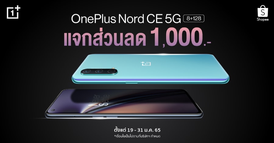 OnePlus แจกส่วนลด 1,000 บาท เฉพาะวันที่ 19-31 ม.ค. 65 เท่านั้น! OnePlus Nord CE 5G (8+128) ราคาเพียง 11,990 บาท ไปช้อปกันเลยที่ OnePlus official store บน Shopee > https://bit.ly/3qF5cgt