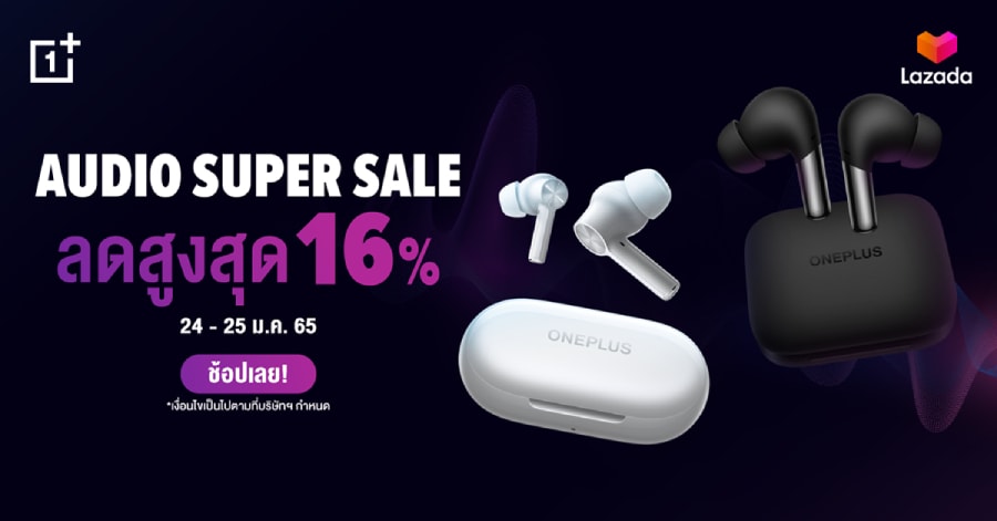 Audio Super Sale ที่ LAZADA ห้ามพลาดเด็ดขาด! หูฟัง สุด Premium ยกขบวนมามอบส่วนลดสุดพิเศษ เฉพาะวันที่ 24-25 ม.ค. 65 นี้ เท่านั้น !! เป็นเจ้าของได้ง่ายๆที่ OnePlus official store บน Lazada เพียง 2 วันเท่านั้น !! หยิบใส่ตะกร้ารอไว้เลย > https://bit.ly/33qGMyv