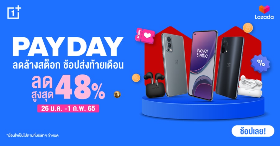 ช้อปมันส์วันเงินเดือนออกกับ OnePlus Pay Day เฉพาะวันที่ 26 – 1 ก.พ. 2565 นี้เท่านั้น! สมาร์ทโฟนและไอเทมสุดฮิตลดจัดเต็ม ลดสูงสุด 48% ช้อปกันได้บน OnePlus official store บน Lazada เตรียมกดใส่ตระกร้า รอไว้เลยลุย!! >> https://bit.ly/3KlJuFU