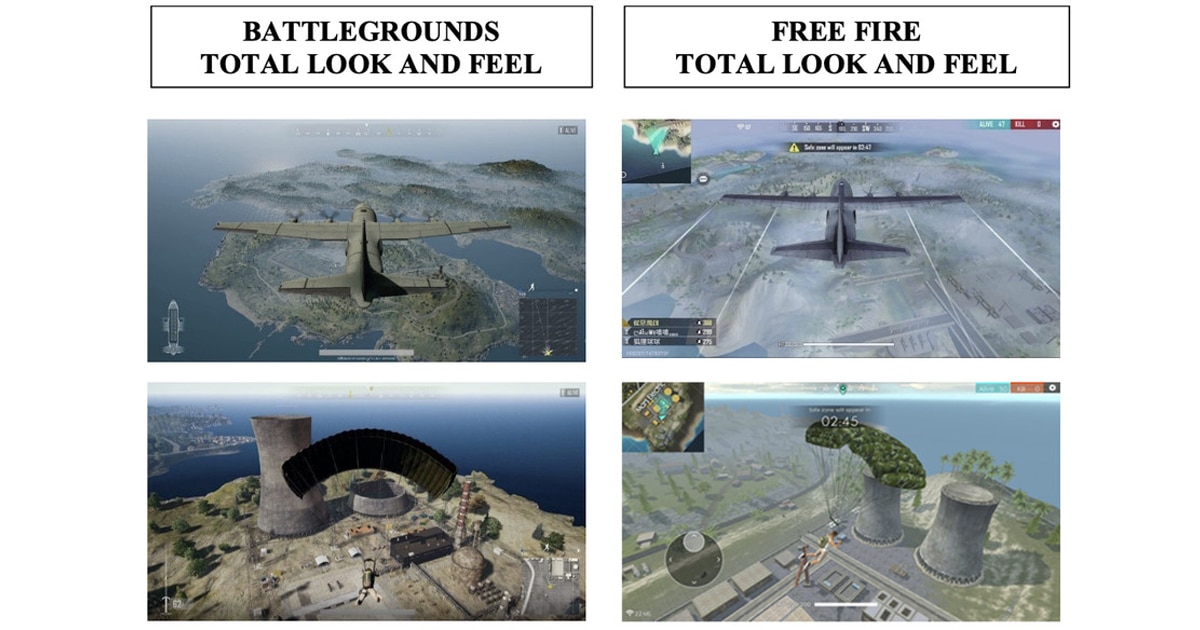 Krafton ระบุว่าเกม Free Fire และ Free Fire Max ที่พัฒนาโดย 111dot Studios และจัดจำหน่ายโดย Garena นั้นเลียนแบบเกม PUBG (ปัจจุบันใช้ชื่อว่า PUBG: Battlegrounds) ตั้งแต่ช่วงต้นเกมอย่างการโดดร่มเพื่อลงจุดต่างๆ ในแผนที่ ซึ่งการโดดร่มในตอนเริ่มเกมนั้นทาง Krafton ได้ทำการจดลิขสิทธิ์เอาไว้ รวมไปถึงองค์ประกอบเกมต่างๆ ไม่ว่าจะเป็นการออกแบบตัวเกม โครงสร้างเกม อาวุธและชุดเกราะที่ใช้ในเกม ฉากและสถานที่ต่างๆ ในเกม และโทนสีของเกม เป็นต้น