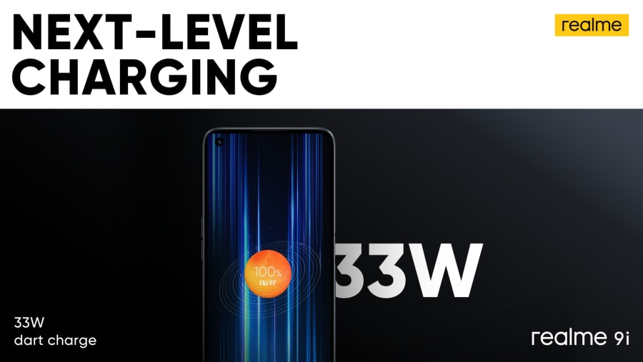 realme 9i รองรับระบบชาร์จไว 33W Dart Charge เพื่อตอบโจทย์ไลฟ์สไตล์ที่ฉับไวของคนรุ่นใหม่ พร้อมติดตั้งระบบความปลอดภัย เช่น การป้องกันแรงดันไฟเกินอัตรา และการป้องกันอุณหภูมิสูงเกินไป เพื่อให้ผู้ใช้อุ่นใจได้ 100% realme 9i ยังให้แบตเตอรี่ขนาดใหญ่ถึง 5000mAh สามารถสแตนด์บายได้นาน 995 ชั่วโมงคุยโทรศัพท์ได้ 48.4 ชั่วโมง และฟังเพลงต่อเนื่อง 116.3 ชั่วโมง! พร้อมฟีเจอร์เพิ่มอายุการใช้งานแบตเตอรี่ให้ยาวนานขึ้น