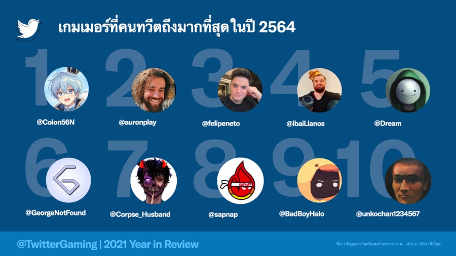 ปี 2564 มีทวีตเกี่ยวกับเกมมากกว่า 2.4 พันล้านทวีต คอเกมไทย ไม่แพ้ชาติใดในโลก ทวีตรั้งอันดับ 4 ผู้คนพูดคุยเรื่องเกมและอีสปอร์ตบนทวิตเตอร์เพิ่มขึ้น 14%