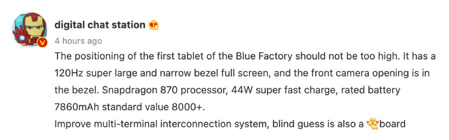 รายงานล่าสุดจาก Digital Chat Station ได้เผยให้เราทราบถึงสเปคของแท็บเล็ตจาก vivo ที่จะมาพร้อมจอ 120Hz, ชิป Snapdragon 870 และชาร์จเร็วถึง 44W