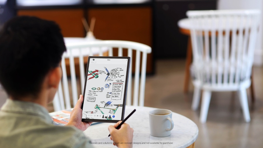 Concept Flow คือแนวคิดด้านโซลูชันที่สามารถปรับเปลี่ยนได้ ช่วยลดความหงุดหงิดและอุปสรรคต่างๆ ที่รบกวนการสร้างประสิทธิผลของงาน โดยทีมงานของเราได้รวมการทำงานของอุปกรณ์ต่างๆ เทคโนโลยีการชาร์จผ่านระบบไร้สายที่ได้มาตรฐานอุตสาหกรรม ซอฟต์แวร์แอปพลิเคชันที่ทำงานได้อย่างฉลาด รวมถึงเทคโนโลยี Wi-Fi 6E docking เพื่อสร้างประสบการณ์การใช้งานร่วมกันได้อย่างรื่นไหล หากลองจินตนาการว่าเราตื่นขึ้นมาในสถานที่ทำงานที่ทุกอย่างทำงานได้อย่างฉลาด แล็ปท็อปเชื่อมต่อกับจอ เมาส์ คีย์บอร์ด และเครือข่ายที่เชื่อถือได้โดยอัตโนมัติ ก่อนที่เราจะนั่งทำงาน เมื่อทำงานก็สามารถทำต่อในส่วนที่ทำค้างไว้ได้ทันที และในทันทีที่คุณวางแล็ปท็อปลง ก็จะใช้พลังงานผ่านระบบไร้สาย (ไม่ต้องพึ่งสายชาร์จ หรือต้องก้มลอดไปเสียบปลั๊กใต้โต๊ะอย่างยากลำบาก) และเมื่อต้องย้ายไปทำงานที่อื่น ฟีเจอร์ตรวจจับระยะใกล้ของ Concept Flow ก็จะตัดการเชื่อมต่อโดยอัตโนมัติเมื่อคุณออกจากสถานที่นั้น การเปลี่ยนสถานที่ทำงานจึงเป็นไปอย่างรื่นไหล ไม่สะดุด