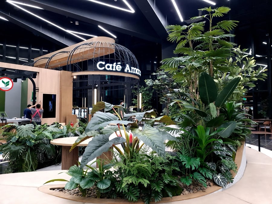 “ด้วยเทคโนโลยีการผลิต เราสามารถสร้างต้นไม้จากวัสดุรีไซเคิลให้เหมือนต้นไม้จริงนานาพันธุ์ได้ อย่างกล้วยด่าง มอนสเตอร่าด่าง บอนสี หรือต้นไม้อื่นๆ ที่ช่วงนี้กำลังฮิต ก็สามารถทำได้ แต่ต้นไม้เหล่านี้มีเอกลักษณ์เฉพาะ ตั้งแล้วมันจะสวยด้วยตัวของมันเอง พอต้องจัดรวมกันให้คุมธีม คุมภาพรวมในการออกแบบจะจัดยาก แต่ก็ขึ้นอยู่กับคอนเซ็ปต์ของงานที่ลูกค้าต้องการ หากสภาพแวดล้อมเอื้ออำนวย ในหลายๆ งานก็สามารถใช้ทั้งต้นไม้จริงและต้นไม้ปลอมเพื่อส่งเสริมกันและกันได้ด้วย”