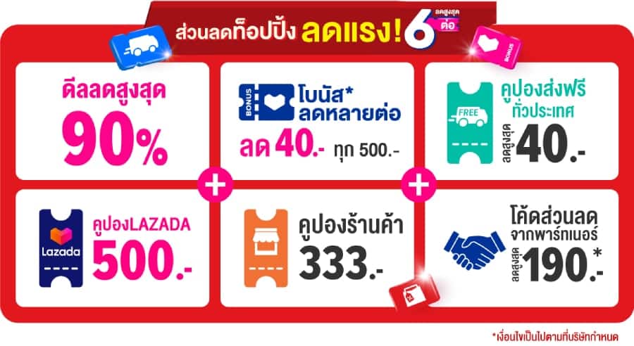 - 6 โค้ดส่วนลดจากพาร์ทเนอร์สูงสุด 190 บาท