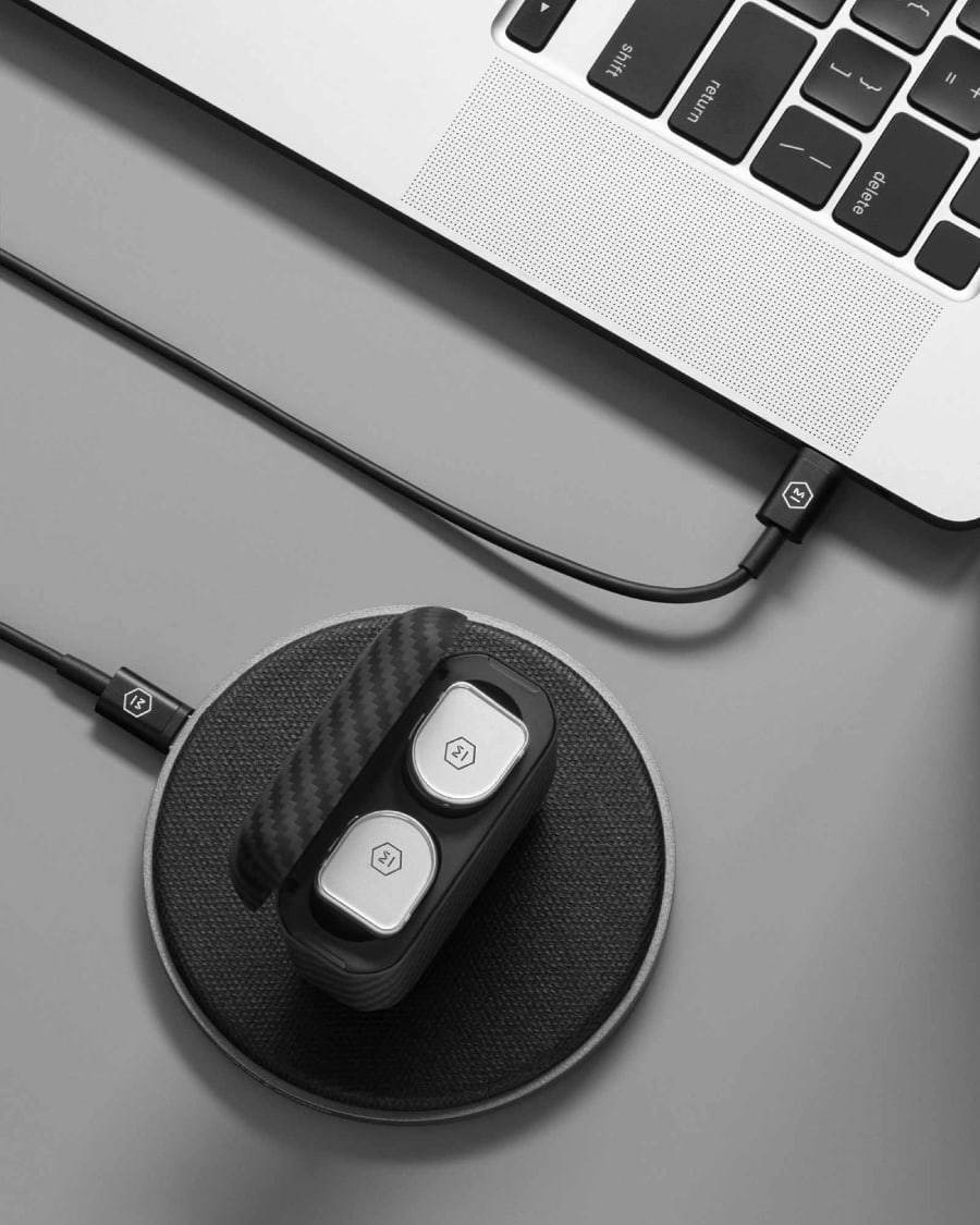 โดดเด่นด้วยการออกแบบอย่างพิถีพิถันและถูกต้องตามหลักสรีรศาสตร์ เพื่อให้ผู้ฟังใช้งานได้อย่างคล่องตัว ตัวหูฟังผลิตจากกระจกแซฟไฟร์ (Sapphire Glass) ซึ่งทนทานต่อการขีดข่วนและมีน้ำหนักเพียง 8.6 กรัม/ข้างเท่านั้น รวมถึงตลับชาร์จที่หุ้มด้วยเคฟลาร์ (Kevlar) ซึ่งเป็นวัสดุที่ใช้ทำเสื้อเกราะกันกระสุน และได้รับการยอมรับอย่างกว้างขวางว่ามีความแข็งแรงและมีน้ำหนักเบา