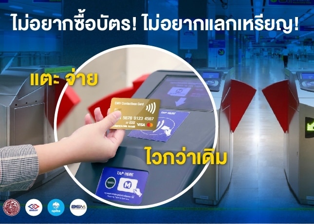 ผู้ถือบัตรมาสเตอร์การ์ด สามารถชำระเงินค่าโดยสารรถไฟฟ้า MRT ระหว่างการเดินทางได้อย่างราบรื่นไม่สะดุด เพียงแตะบัตรเครดิตหรือบัตรพรีเพดมาสเตอร์การ์ดเพื่อชำระเงินแบบไร้สัมผัสที่ประตูสถานี ไม่ต้องใช้เงินสด ซื้อตั๋วหรือเติมเงินบนบัตร MRT ได้แล้วตั้งแต่วันนี้ บัตรคอนแทคเลสของมาสเตอร์การ์ดใช้เทคโนโลยี EMV ที่มีความปลอดภัยและเป็นที่ยอมรับอย่างกว้างขวาง ซึ่งปัจจุบันใช้งานกับการขนส่งหลากหลายรูปแบบ ทั้งรถโดยสารสาธารณะและด่านเก็บค่าผ่านทางด่วนทั่วกรุงเทพฯ