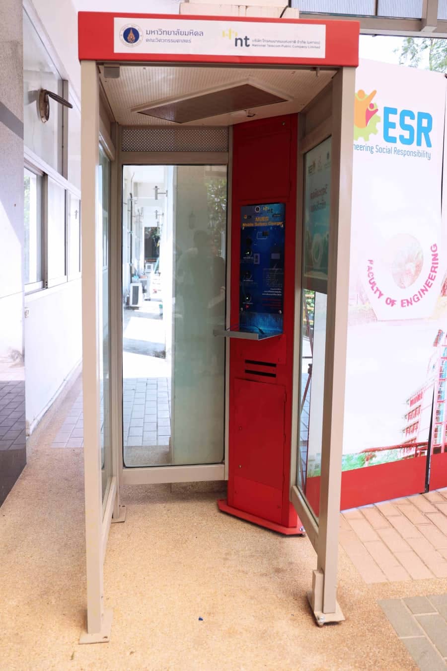 คณะวิศวกรรมศาสตร์ มหาวิทยาลัยมหิดล โดยงานวิศวกรรมเพื่อความรับผิดชอบต่อสังคม (ESR) ร่วมกับ บริษัท โทรคมนาคมแห่งชาติ จำกัด มหาชน (NT) ในโครงการ MUEG Mobile Battery Charger นำตู้โทรศัพท์สาธารณะที่หมดความจำเป็นในการใช้งานแล้วมารีไซเคิลพัฒนาเป็นนวัตกรรม ตู้ชาร์จโทรศัพท์มือถืออัตโนมัติ (Mobile Battery Charger) รุ่นใหม่มีอักษรเบรลล์สำหรับผู้พิการ ส่งมอบให้แก่วิทยาลัยราชสุดา เพื่อบริการแก่ผู้พิการ ประชาชนและสังคม