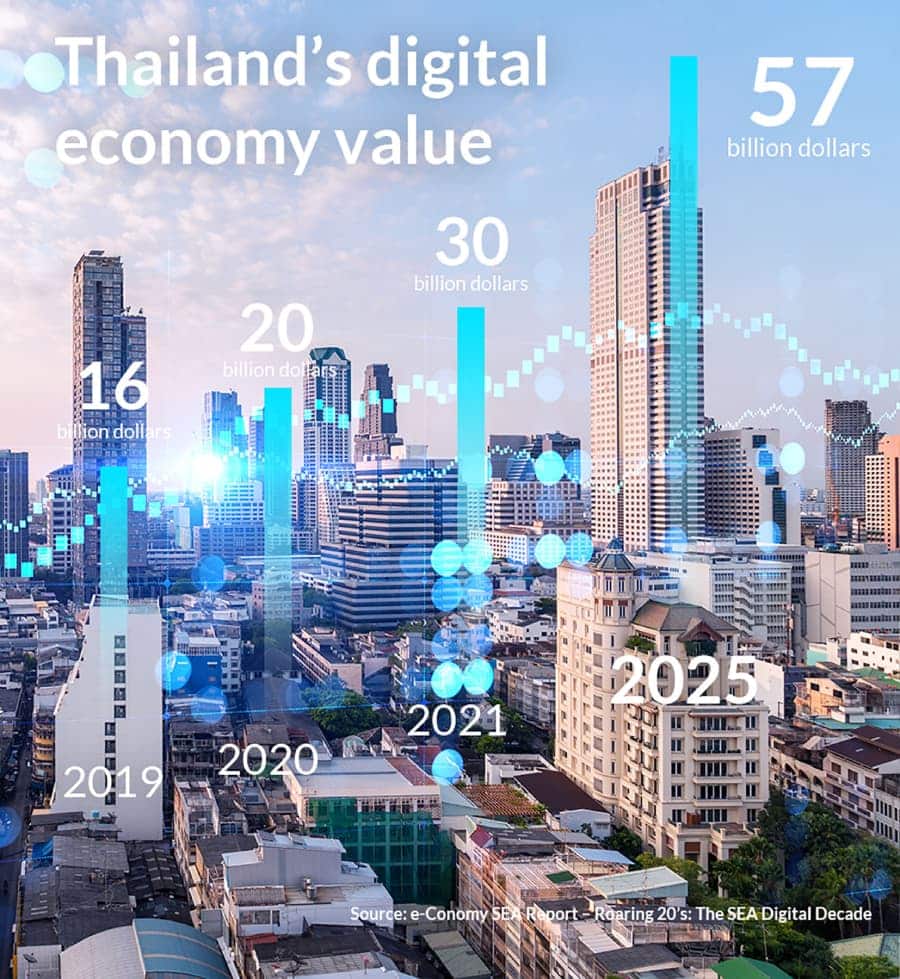 การฟื้นตัวอย่างต่อเนื่องหลังเกิดโรคระบาด COVID-19 เป็นแรงผลักดันเพิ่มเติมที่กระตุ้นให้ภาคธุรกิจไทยเล็งเห็นความสำคัญของนวัตกรรม (Innovation) และการลงทุนไปสู่การใช้จ่ายด้านคลาวด์มากขึ้น การใช้จ่ายของประเทศไทยในด้านโครงสร้างพื้นฐานระบบคลาวด์คาดว่าจะเติบโตกว่าการคาดการณ์ของการเติบโตทั่วโลก โดยในปี 2565 คาดว่าจะอยู่ที่ 28.2% โดยบริการที่เป็นโครงสร้างพื้นฐาน (Infrastructure-as-a-Service) จะมีตัวเลขการเติบโตสูงสุดเนื่องจากองค์กรธุรกิจไทยได้ขยายโครงสร้างพื้นฐานและโยกย้ายระบบไอทีที่ซับซ้อนขึ้นสู่ระบบคลาวด์ เพื่อตอบรับการทำงานทางไกล (Remote Working Environment) ให้ดียิ่งขึ้น