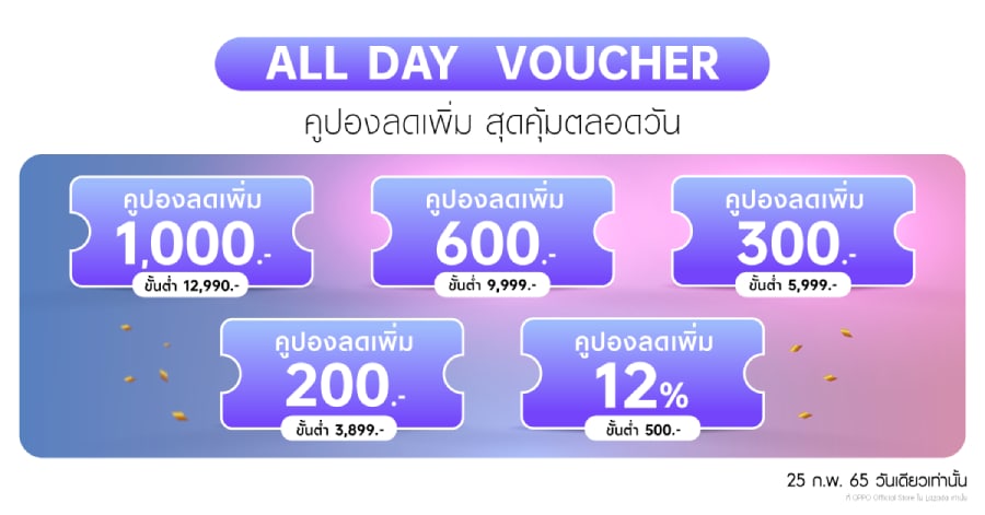 คูปองส่วนลดสุดคุ้มตลอดวันไปกับ All Day Voucher ลดเพิ่มสูงสุด 1,000 บาท