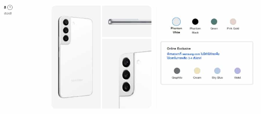 สีเฉพาะ samsung.com อย่าง สีเทา Graphite สีครีม สีฟ้า Sky Blue และสีม่วง Violet