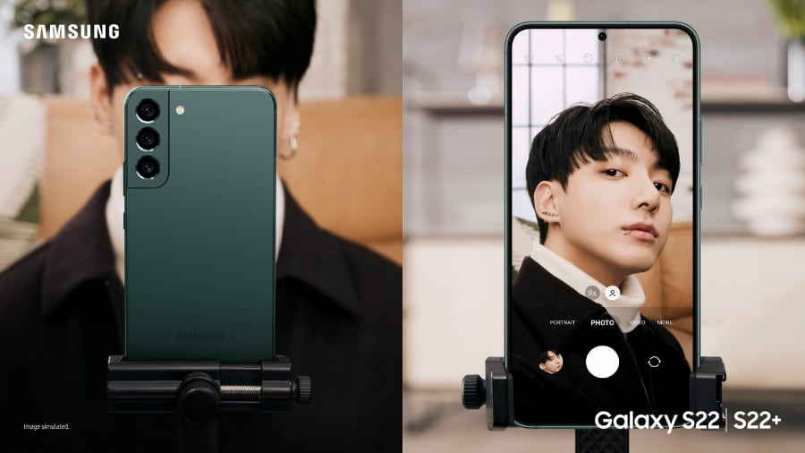 มาถึงคนสุดท้าย มักเน่ทองคำ JungKook หรือจอนจองกุก กับ Galaxy S22+ สีเขียวสุดเท่เหมือนเจ้าของ ที่มาโชว์ฟีเจอร์ถ่ายเซลฟี่กล้องหน้าให้เราได้ดูอย่างเต็มตาบนหน้าจอขนาด 6.6 นิ้ว ที่มีเทคโนโลยี Vision Booster ช่วยปรับการแสดงผลภาพให้เข้ากับแสงบรรยากาศรอบตัวผู้ใช้ และปรับคอนทราสต์สีให้เหมาะสม รวมถึงอัตราความสว่างของหน้าจอที่เพิ่มสูงสุดถึง 1,750nits จึงทำให้ใช้งานเพื่อดูทุกภาพ วิดีโอ หรือคอนเทนต์ต่างๆ ได้อย่างเพลิดเพลินเต็มอรรถรส